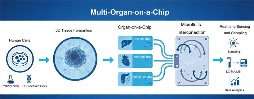 Multi-organ-on-a-Chip (MooC) is an integrated microphysiological platform that interconnects multiple functional human 3D tissue modules through a precisely controlled microfluidic network to recapitulate systemic human physiology. By combining advanced microfabrication with human-relevant 3D tissue engineering, MooC functions as a Body-on-a-Chip, enabling dynamic simulation of absorption, distribution, metabolism, and excretion (ADME), as well as organ–organ signaling and regulatory feedback loops that govern whole-body responses.